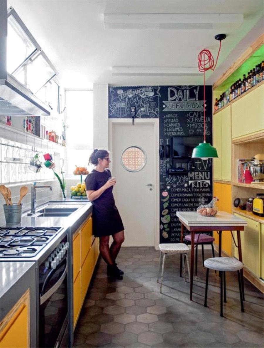 Nichos e prateleiras para exposição de objetos colecionáveis ou decorativos, ladrilhos, paredes de giz e eletrodomésticos coloridos também são elementos muito utilizados por quem busca este estilo de cozinha.