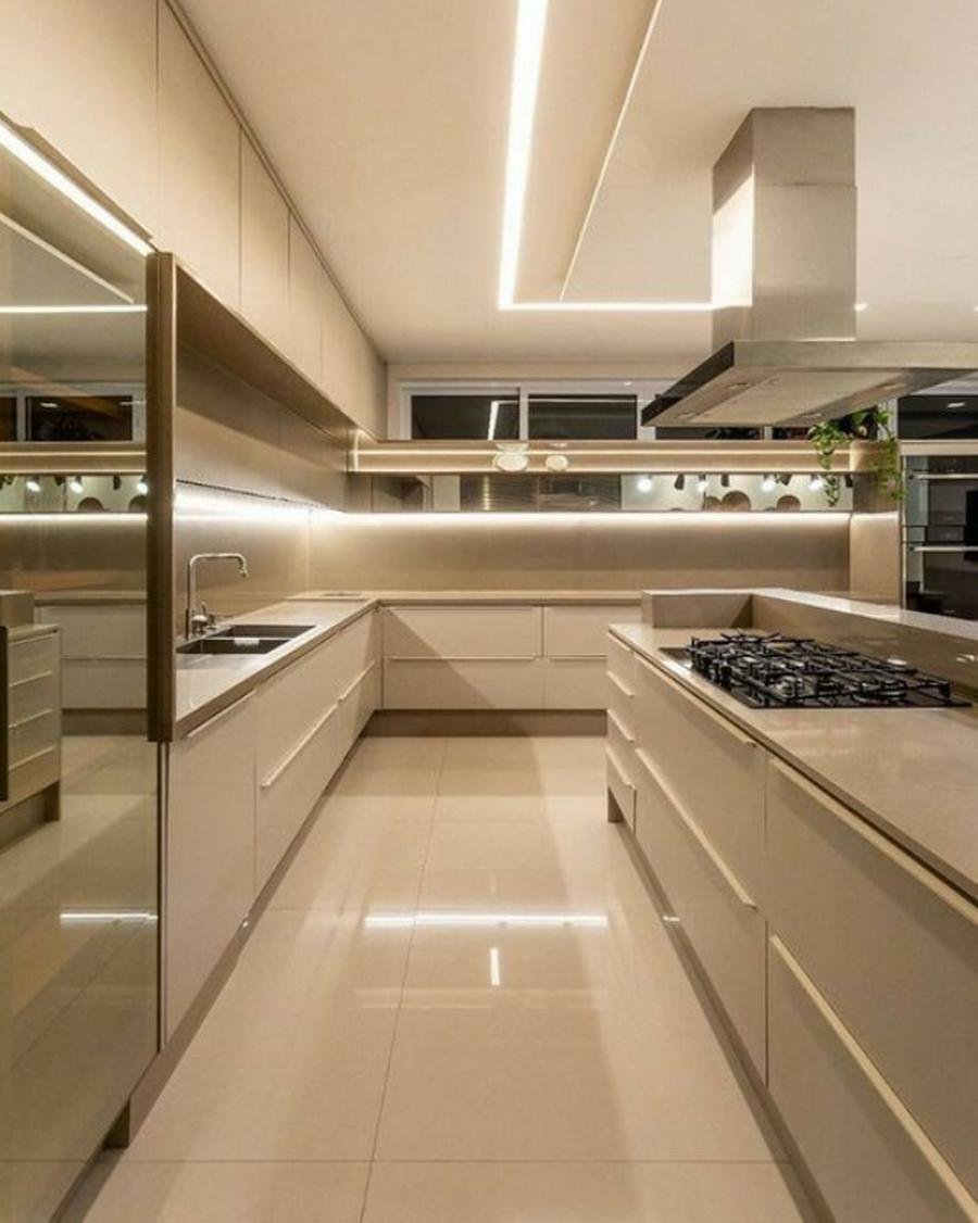 A cozinha no estilo moderno também é comum. O que difere ele dos outros estilos é ser mais elegante e sóbria.